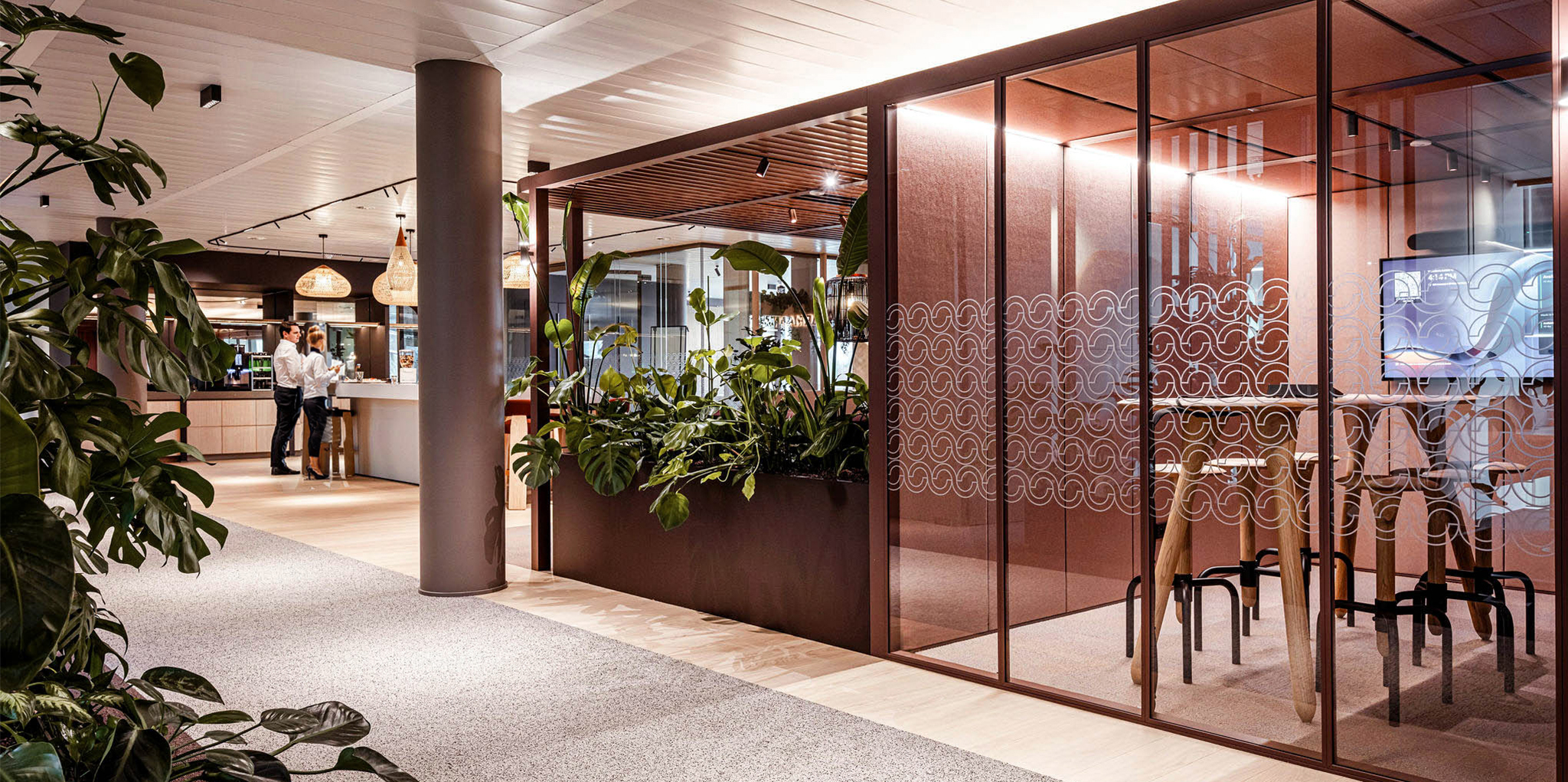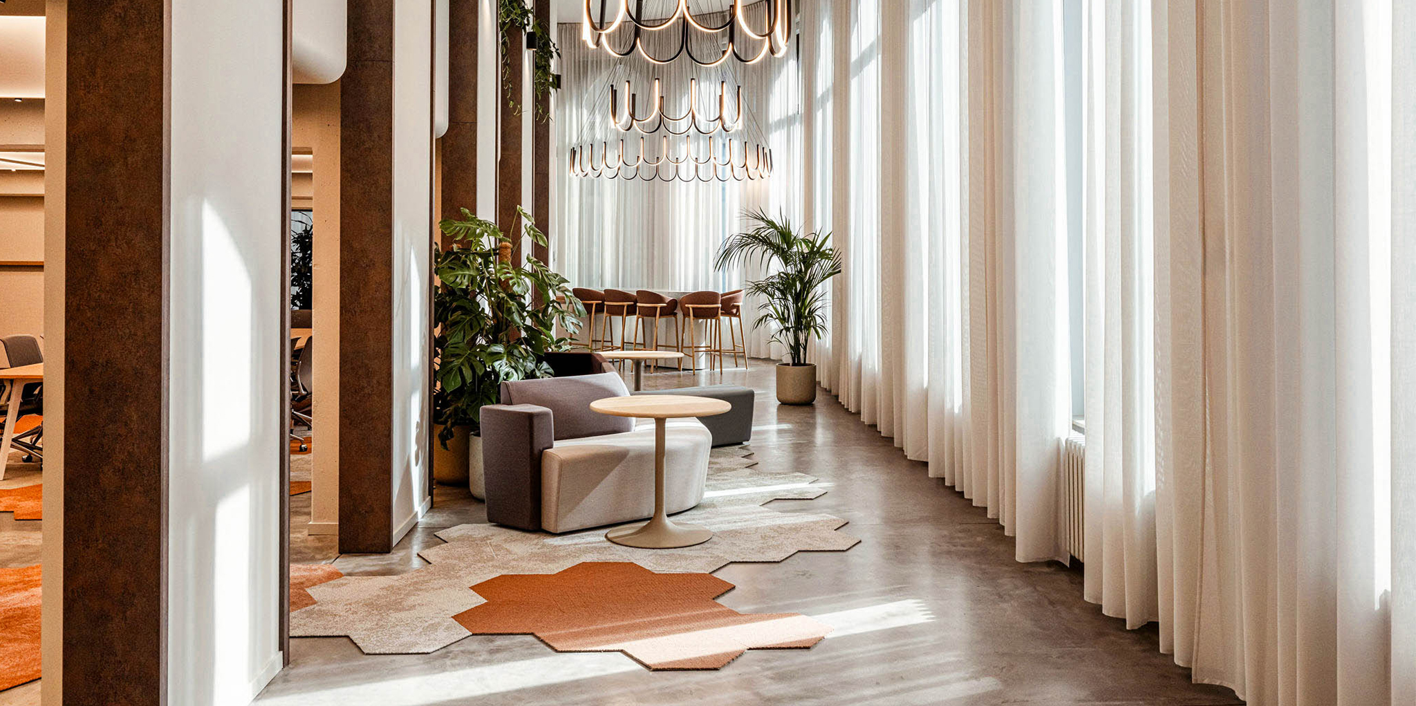 Hospitality plays a central role in this approach. Not as a superficial layer, but as a fundamental design principle. The workplace is experienced as a welcoming environment, where comfort, quality, and intuitive use are key.
