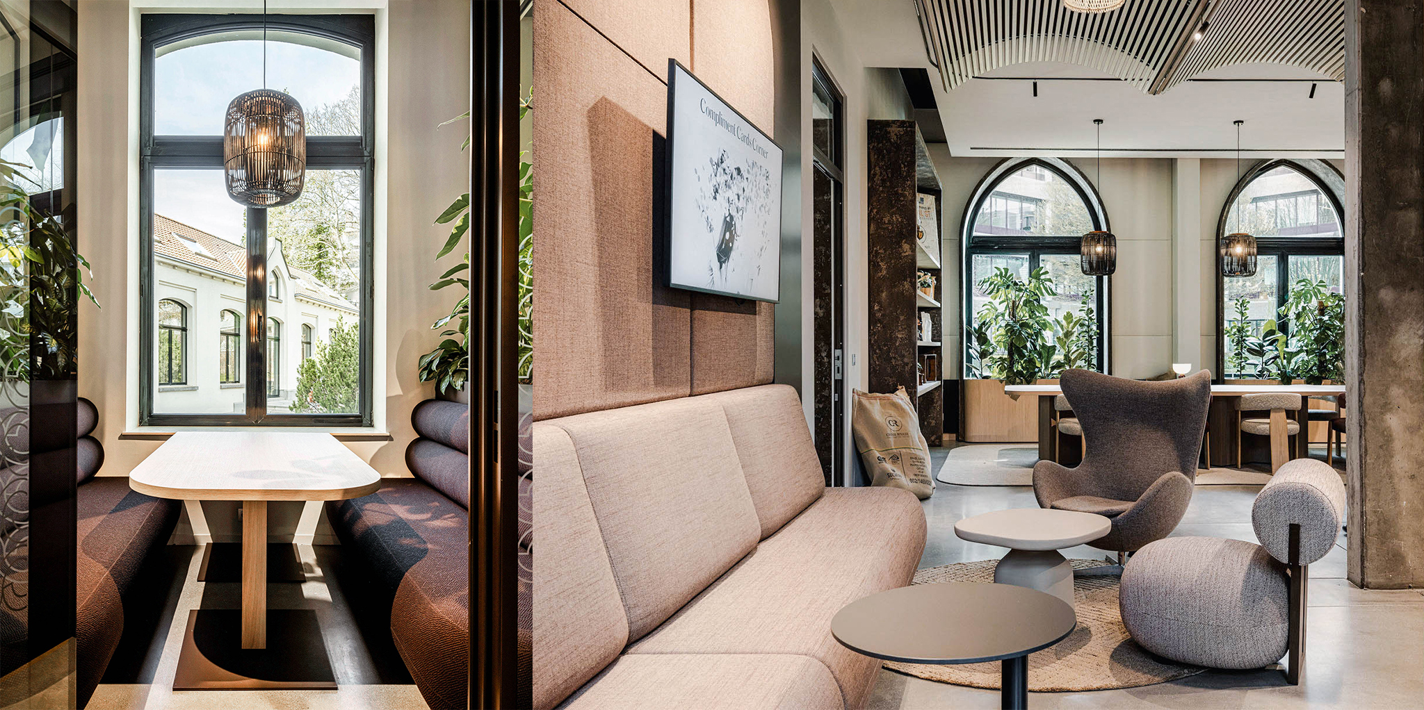 In 2024, our studio was commissioned to design two workplaces for A&O Shearman in Brussels and Antwerp. Rather than approaching these projects as traditional office environments, we developed them as integrated spatial ecosystems. Places where working, meeting, focusing, and unwinding coexist seamlessly.