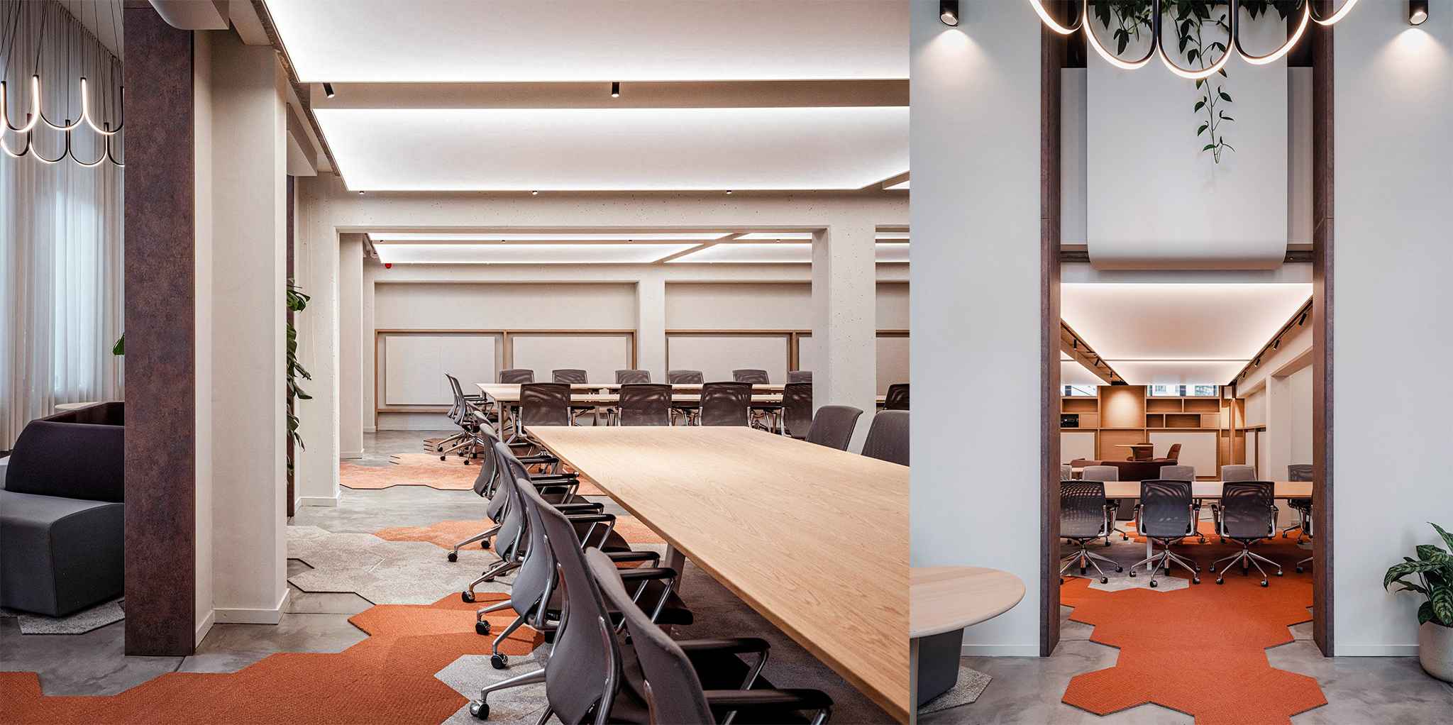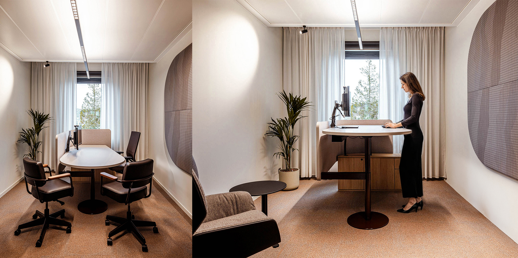 The result is a workplace that operates as a living environment. A place where openness and privacy, energy and calm, interaction and focus are carefully balanced. Each space has its own atmosphere, yet contributes to a coherent whole.