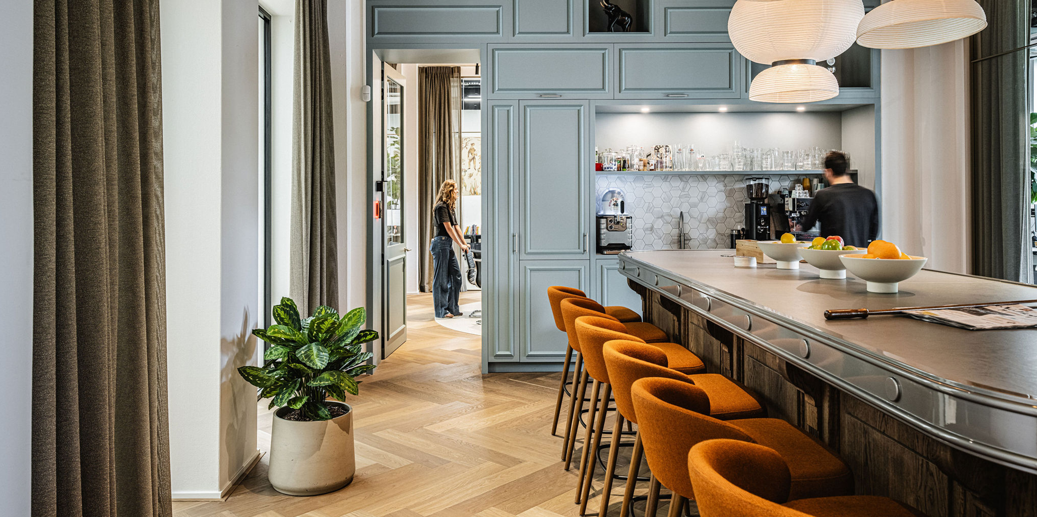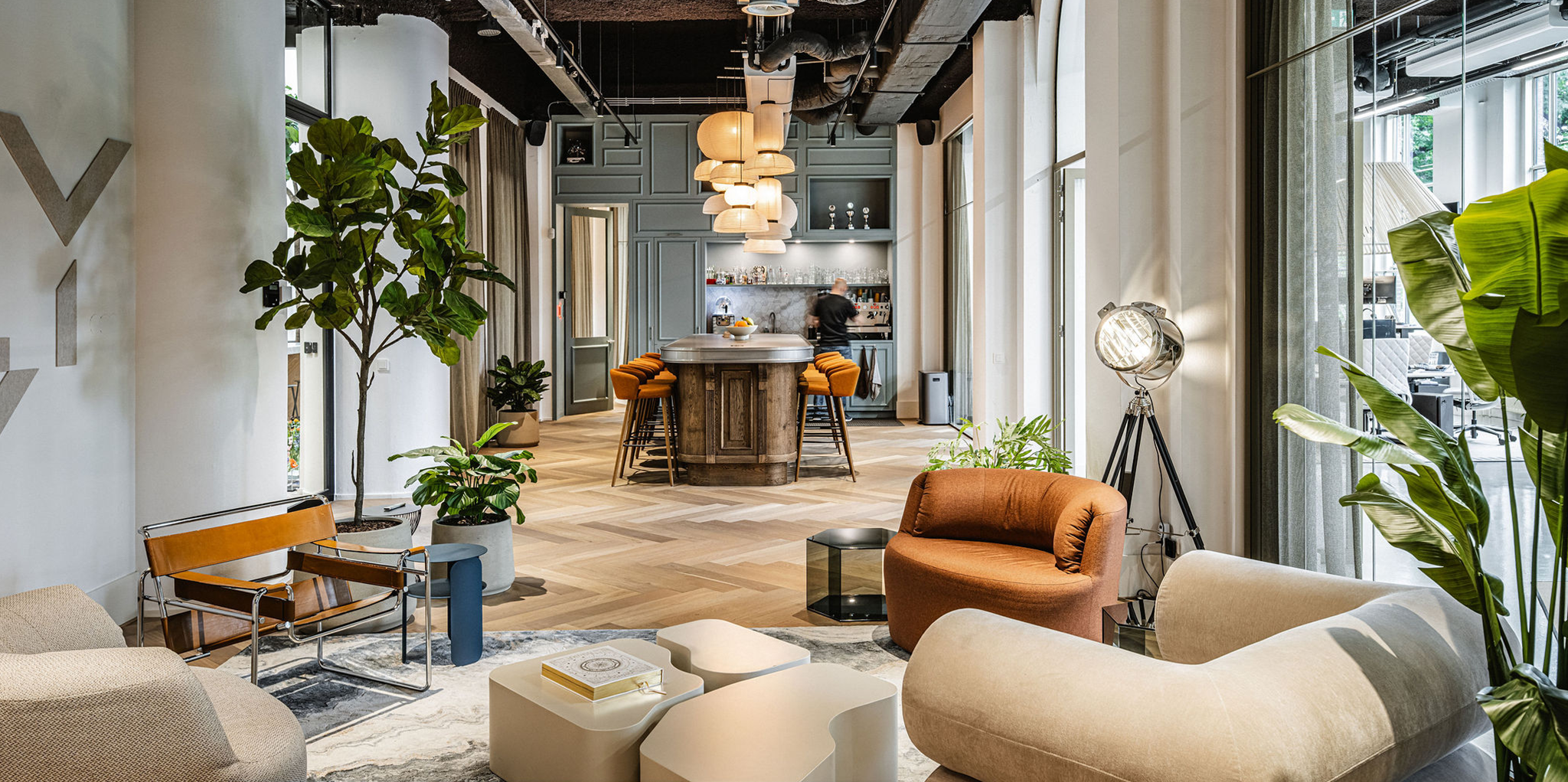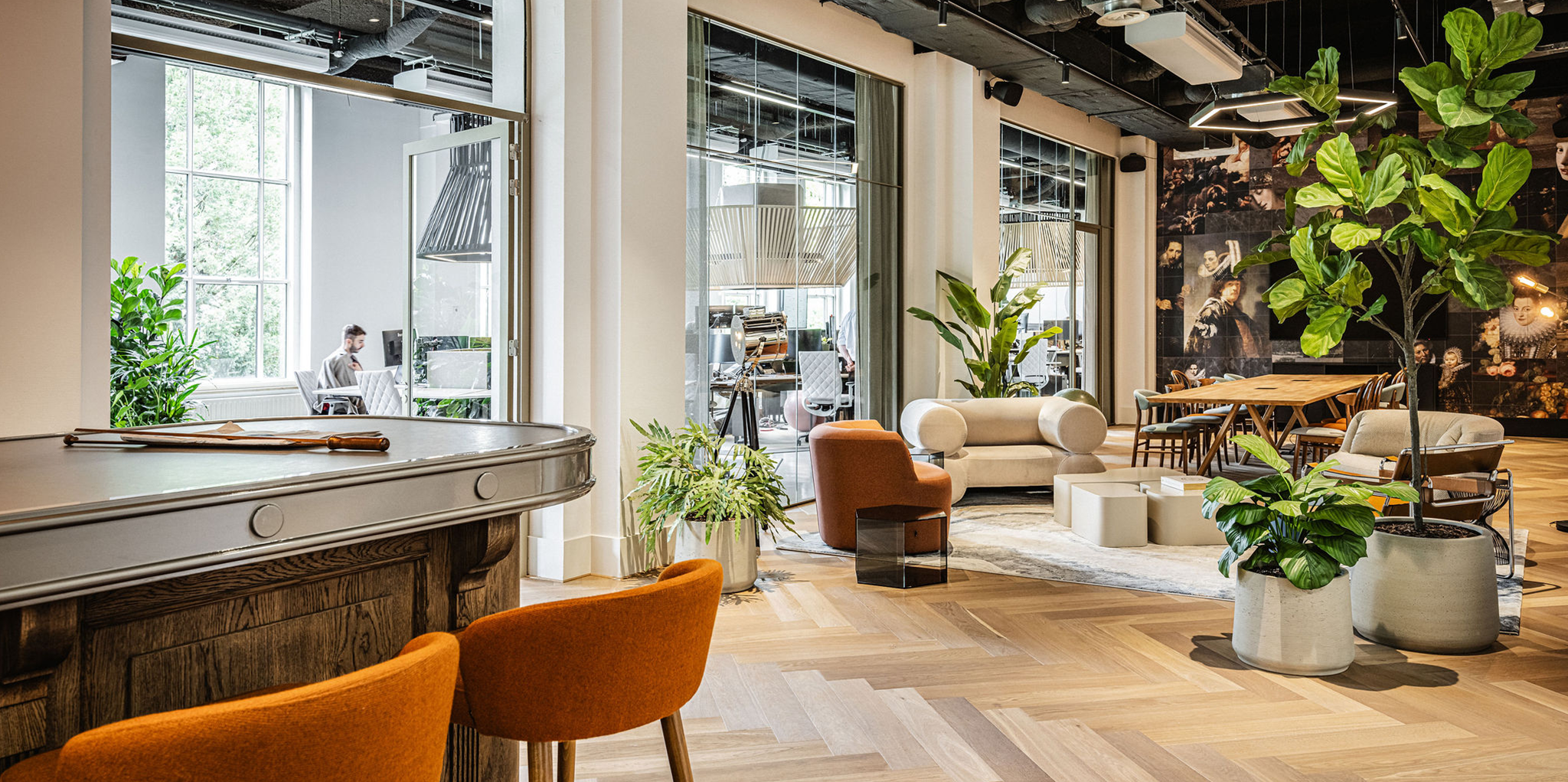 The architectural character of De Olifant provided a powerful starting point. Our goal, in order to give Olyx their own marker in the history of this building, was to balance the robustness and hard architectural lines of the building with an element of playfulness and comfort through its interiors. Industrial framing is softened through material choices and bespoke elements, creating an environment that feels composed rather than rigid. Transparency is used selectively, reinforcing openness where possible and discretion where required.